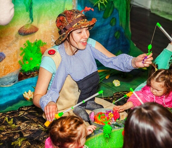 Интерактивные сказки для малышей проходят в непосредственной близости от юных зрителей. А некоторые действия актёры переносят к гостям, и каждый малыш может потрогать героев сказки.